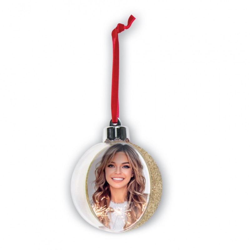 Sfera da appendere all'albero di Natale con 1 foto e retro gold glitterDestinatario :